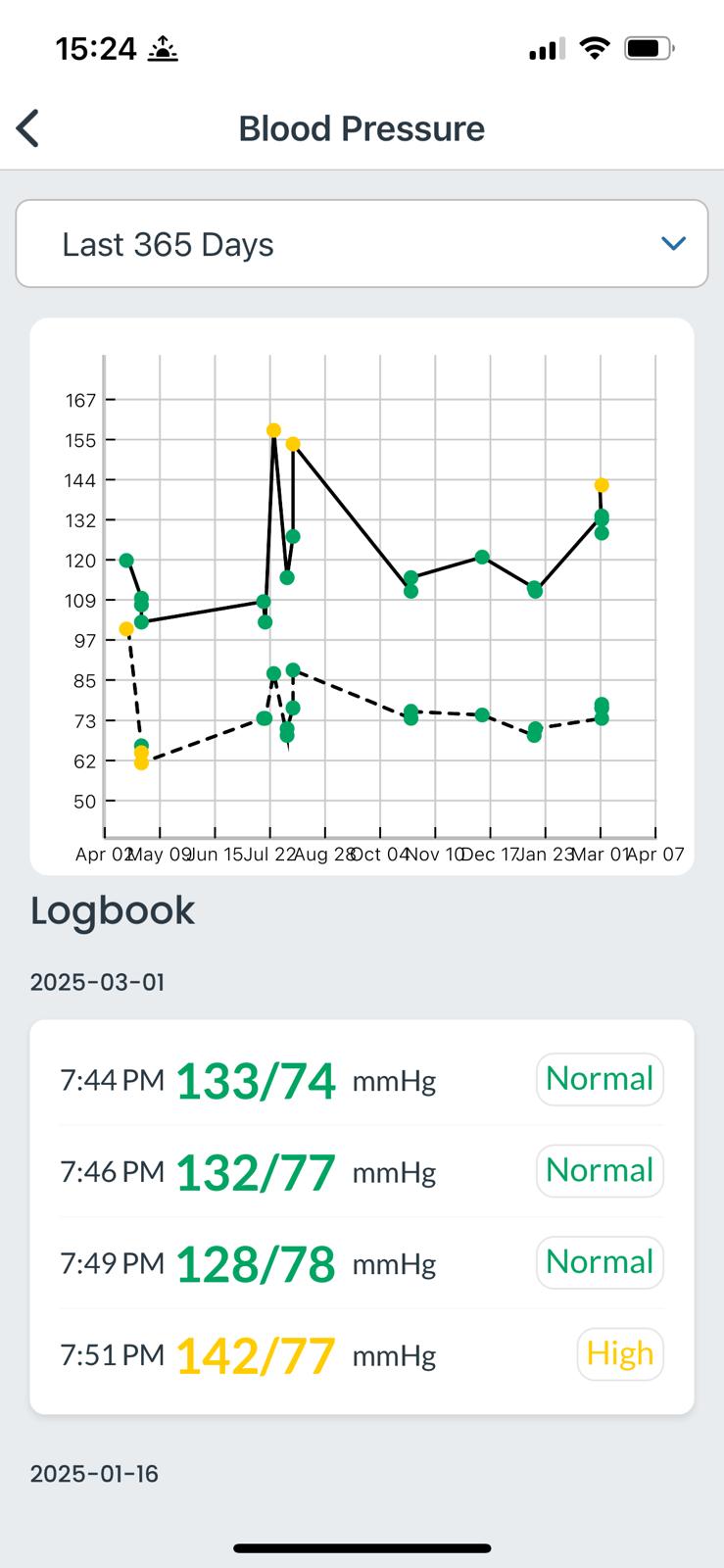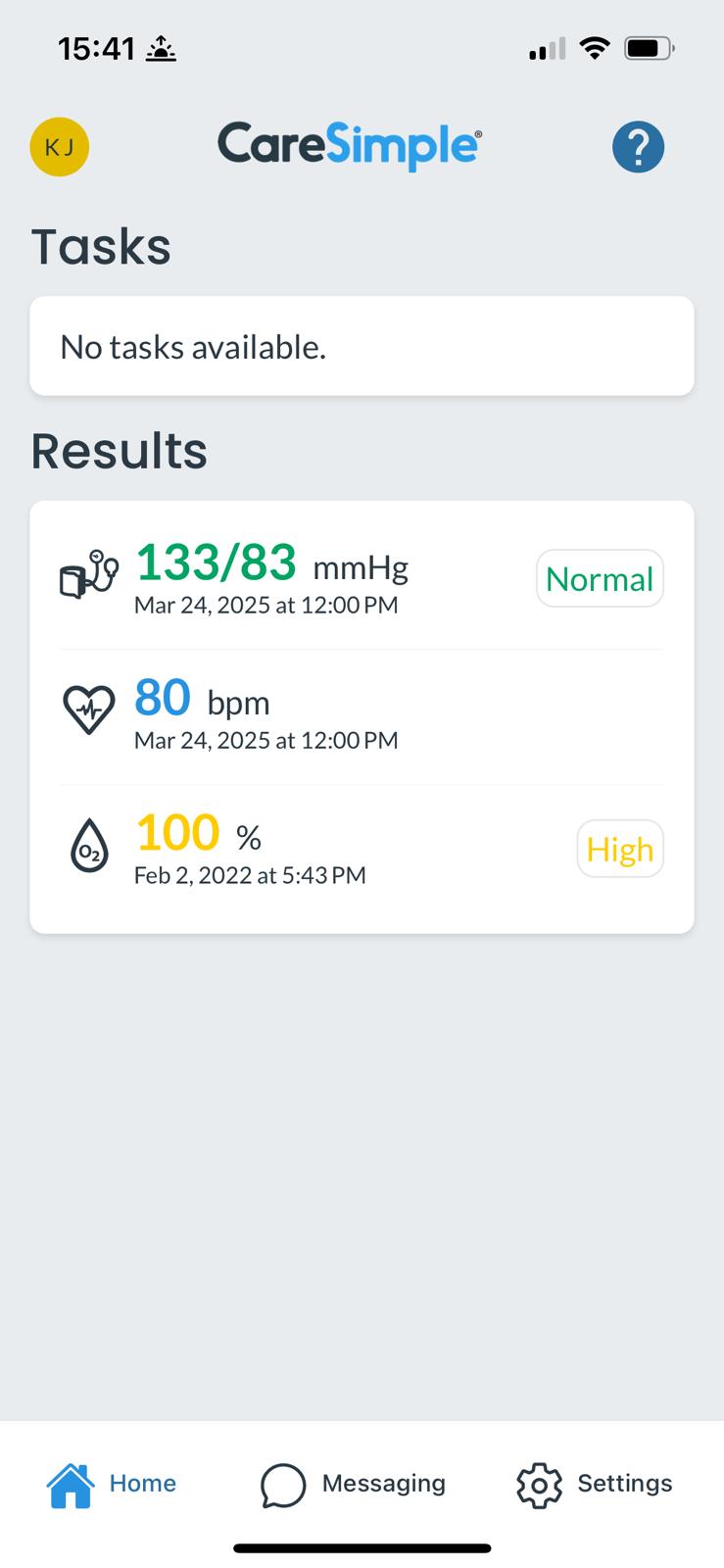 1. Open the "CareSimple" app on your phone or tablet and press on your latest results to view a history of your readings